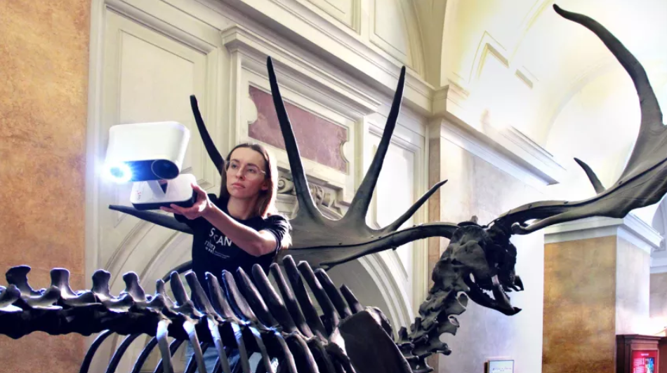 维也纳自然历史博物馆的维奥拉·温克勒正在使用Artec Leo扫描巨鹿