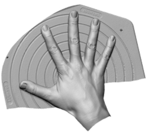 Artec Spider对手背进行了快速扫描,向我们展现了肌肤与指甲上的微妙细节。由于这是一次现场即兴演示,因此扫描时间非常短,但扫描仪也捕获到了复杂的表面细节。例如,拇指和食指间褶皱的皮肤,以及指甲盖上的隆起物。手指之间的区域也很快完成,没有出现任何额外的数字影像或噪音。